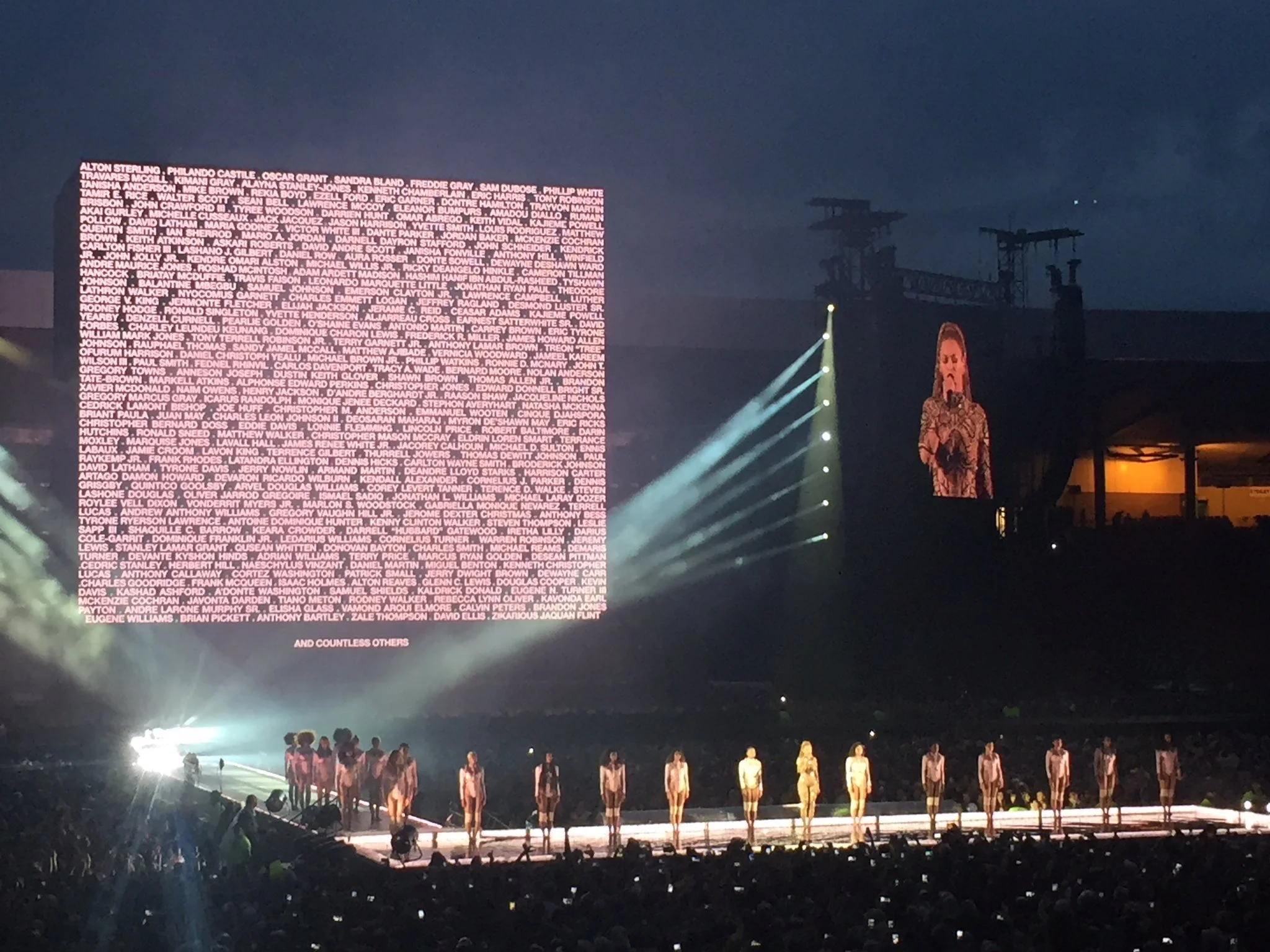 Last night in Glasgow, Beyoncé held a moment of silence for Alton Sterling and Philando Castile, and to protest police brutality. The images and videos swarming online of the concert are powerful to say the least.